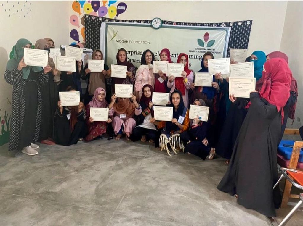 Afghan-Pak Women conducted a five-day women's entrepreneurship workshop for 23 Afghan refugees in Kot Hathial, #Islamabad, #Pakistan in partnership with Moqah Foundation.